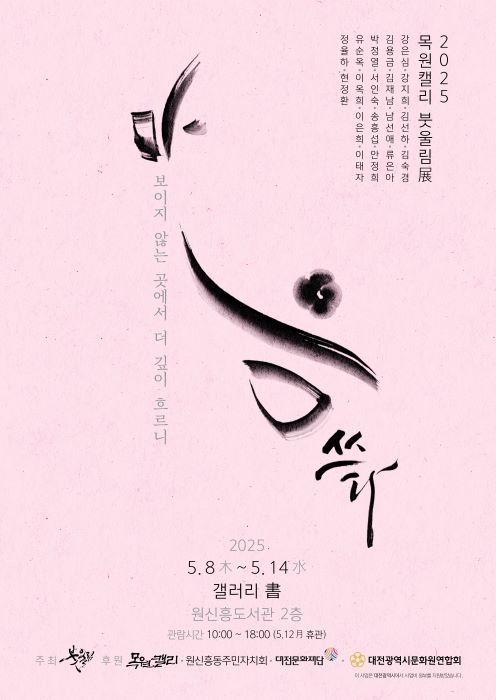 붓울림이 주최하고 대전문화재단, 대전문화원연합회, 원신흥동주민자치회, 목원캘리가 후원하는 이번 전시는 '마음, 쓰다'를 주제로 진행된다. 부제는 '보이지 않는 곳에서 더 깊이 흐르니'로, 눈에 보이지 않는 마음의 결을 붓끝으로 표현하는 캘리그라피 작품들이 선보인다.